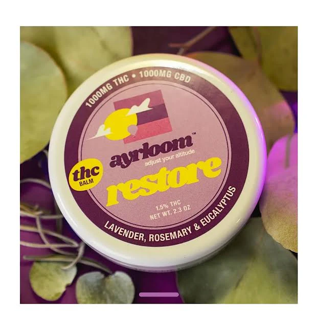 Restore is a 1000mg of THC : 1000mg of cbd which includes organic refined shea butter, organic coconut mct oil, organic beeswax, cannabis extract, organic lavender essential oil, organic eucalyptus essential oil, organic rosemary essential oil.