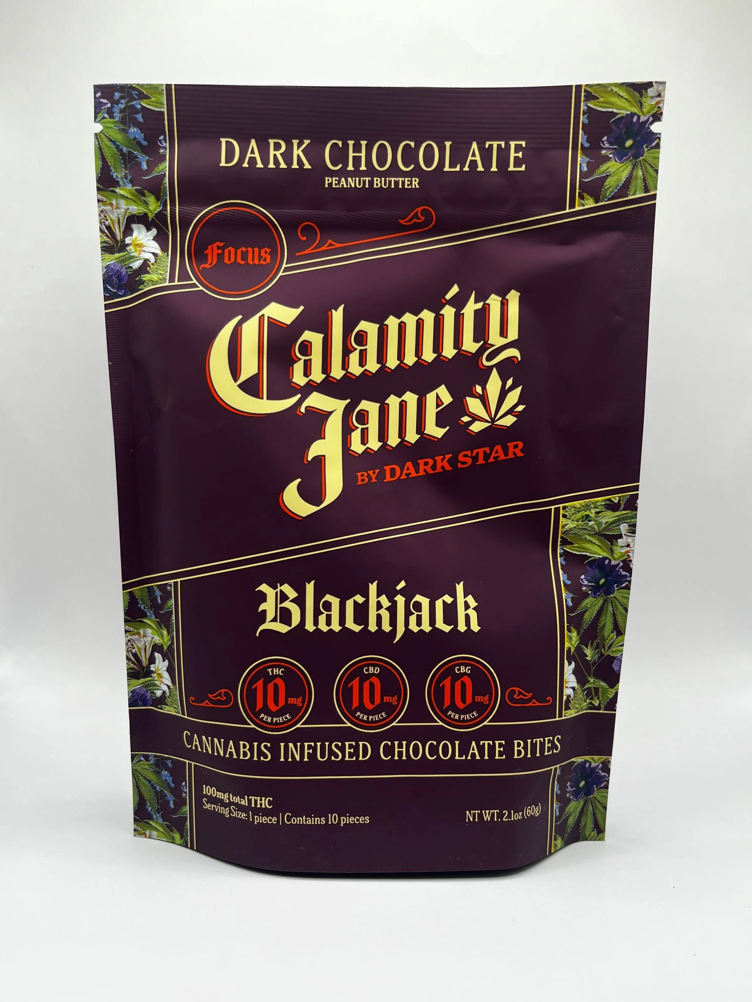 Blackjack Peanut Butter Dark Chocolate Focus Bites combine creamy peanut butter and rich dark chocolate in a smooth, satisfying edible that delights both palate and purpose. Created by Dark Star Cannabis, these bites offer a flavorful way to stay centered and alert, delivering focus with a calm, balanced lift. A thoughtful treat for moments when you want clarity and taste to go hand in hand. Notable effects are: Clear Mind, Creativity, Energy, Inspiration, and Euphoria.