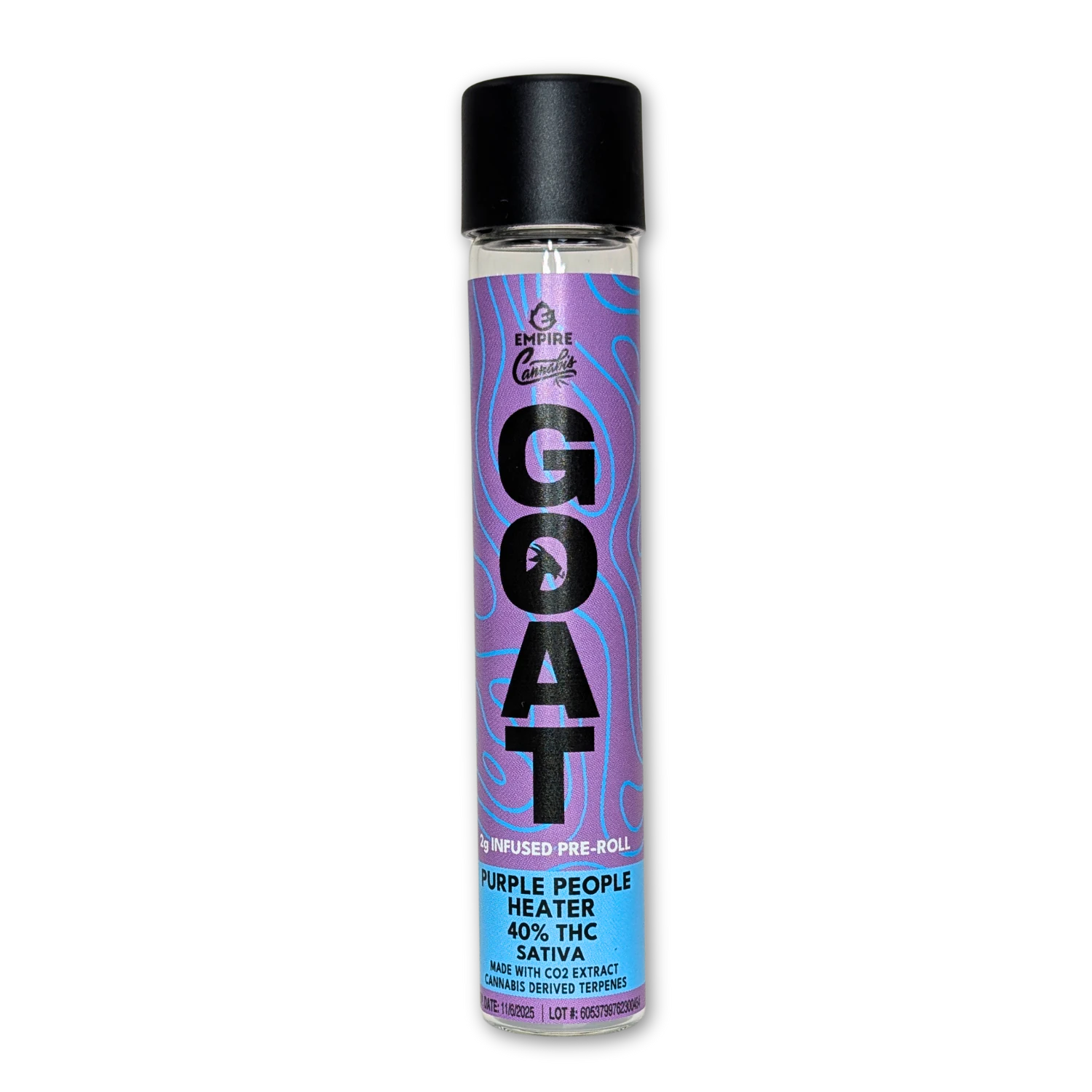 • GOAT Purple People Heater - 2g Infused Single Pre-Roll • Elevate your experience with Purple People Heater, a dynamic sativa known for its bold character. Crafted from our premium Purple Punch flower and infused with in-house CO2-extracted Cannabis Derived Terpenes and Full Spectrum Extract, this 2g pre-roll delivers an impressive 40% THC, ideal for those seeking to enhance their day. From the first puff, enjoy a juicy burst of grape candy and ripe berries, complemented by subtle floral and herbal undertones. Energetic and uplifting, Purple People Heater is perfect for sparking creativity, boosting focus, or simply enjoying the moment. "Smoke the GOAT. Feel the heat." • Strain: Purple People Heater (Purple Punch) • THC % / Type: 40% THC, Sativa • Size: 2 gram Infused Pre-Roll • Ingredients: Cannabis Flower, Pre-Roll Cone, Cannabis Extract Oil, Cannabis Derived Terpene