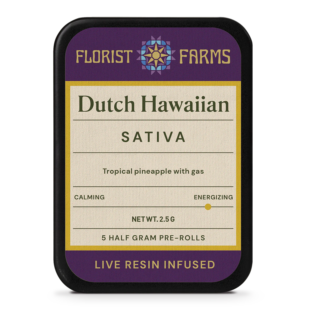 Big, fragrant, tropical buds are the trademark of this Dutch Treat and Hawaiian Sativa cross. This juicy flower is the perfect prequel to exercise or just a joyful jaunt around the block after dinner. Blissful and floaty, you're sure to find yourself savoring the little things. Infused with our expertly-crafted live resin sugar, these pocketable prerolls pack a terpene-rich flavor punch!