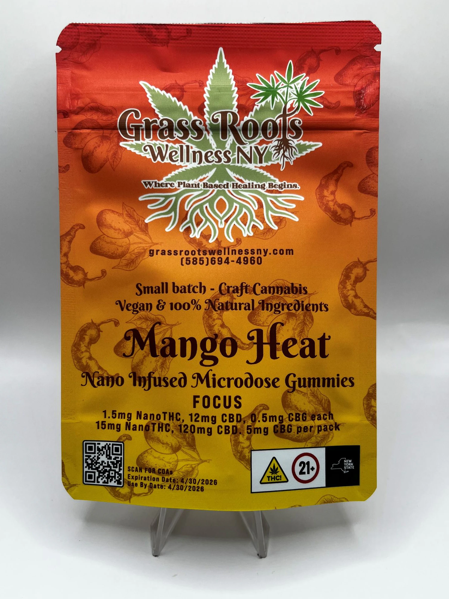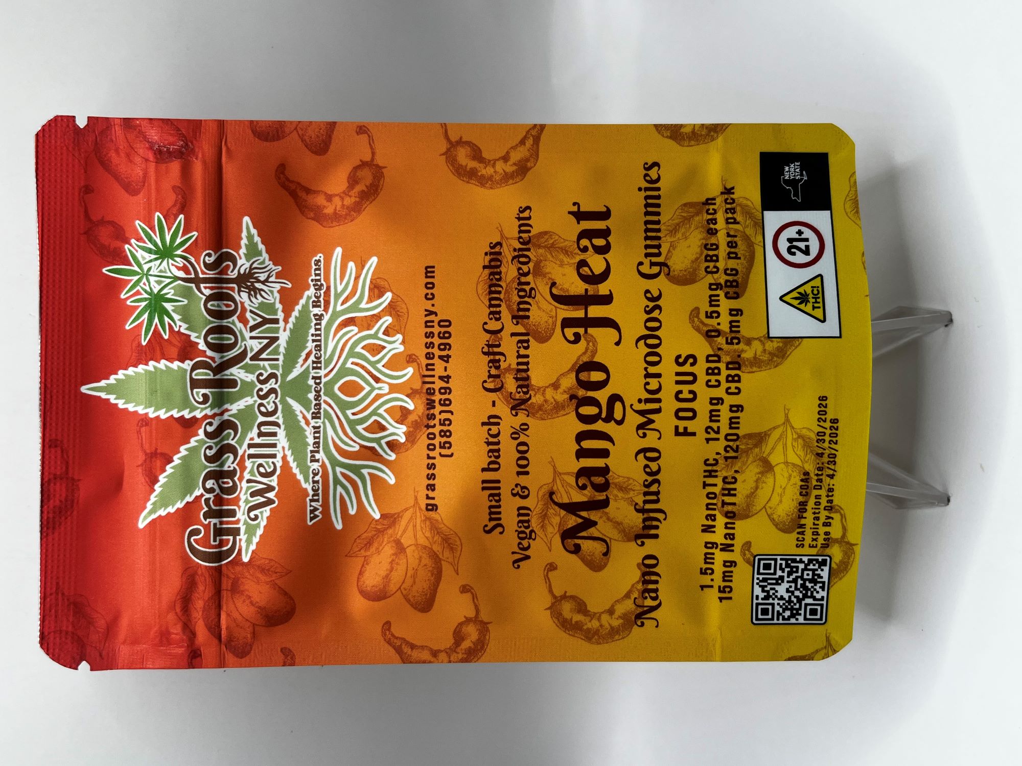 Grass Roots Wellness’s Mango Habanero Gummies combine a bold tropical kick with gentle, balanced effects. Each piece contains 1.5mg of NanoTHC, 12mg of CBD, and 0.5mg of CBG — a low-dose blend designed for smooth focus, relaxation, and subtle uplift without overwhelming intensity. The CBD helps promote calm and recovery, while the CBG adds an extra touch of mental clarity and balance, making these gummies ideal for daytime wellness or easing into cannabis with confidence. Formulated with NanoTHC, these gummies are designed for faster absorption and quicker onset compared to traditional edibles.