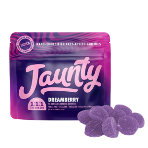 Sweet dreams, Jaunty. These new, fast-acting Dreamberry gummies blend together THC, CBN, CBD, and indica effects-based terpenes. Sink into your couch with a full body rest and relaxation that immediately lifts the weight of the day off your shoulders.
