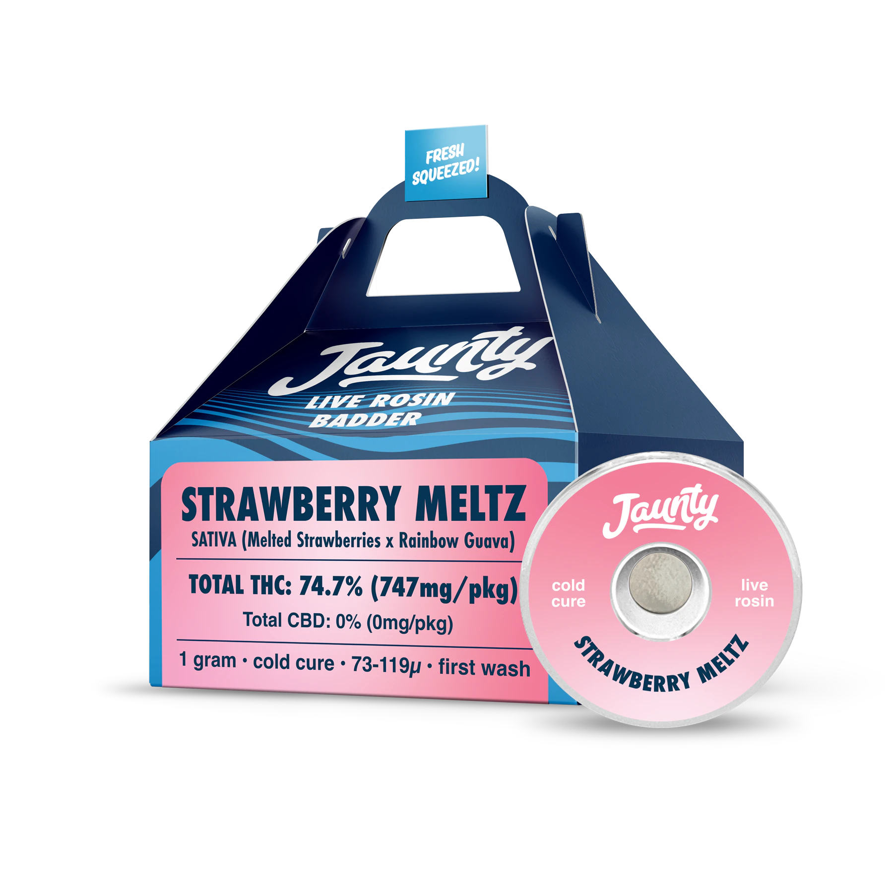 Jaunty’s Strawberry Meltz Cold Cure Badder is a solventless live rosin that captures the full, unfiltered essence of the plant. Derived from the Melted Strawberries x Rainbow Guava lineage and crafted from freshly frozen, sun-grown flower and slow-cured for a smooth, creamy texture, it delivers rich layers of flavor—floral, earthy, fruity, and just a touch tart. Dominant terpenes like Myrcene, Limonene, and Caryophyllene create a balanced experience that’s both relaxing and uplifting, perfect for easing tension while keeping your mood bright. Every dab offers a clean, full-spectrum expression of the plant—pure, potent, and refreshingly natural.
