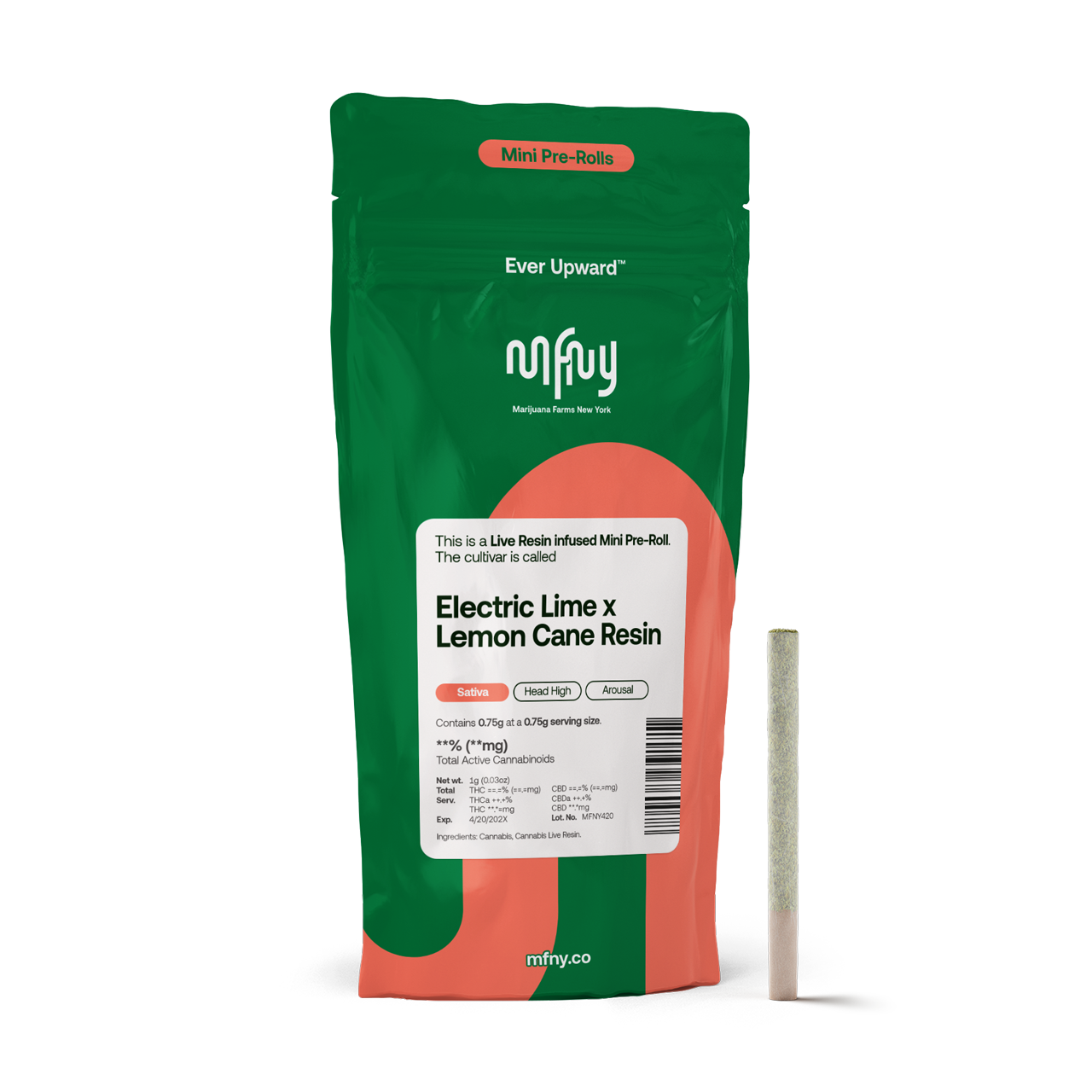 MFNY’s Electric Lime × Lemon Cane Live Resin Pre-Roll offers a bright, citrus-forward and slightly gas-tinged smoke that merges the tangy lime and cherry-lime funk of Electric Lime with the zesty lemon peel zest of Lemon Cane, giving a refreshing lemon-lime aroma and flavor with subtle fruity undertones thanks to preserved live terpenes. The effects are uplifting, promoting energetic, happy, creative, focused, and inspired sensations with a heady euphoria that suits daytime or social sessions.