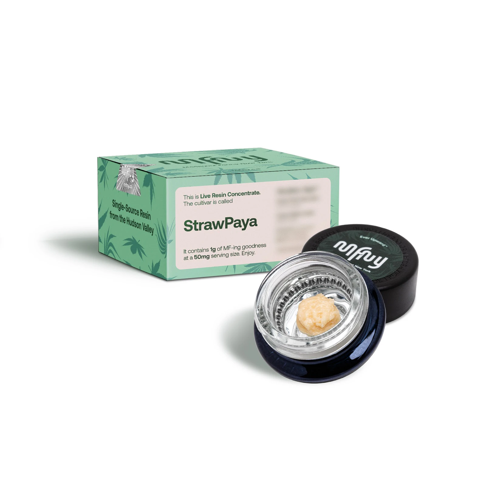 MFNY’s Strawguava x Papaya Live Resin badder is a premium concentrate made in house, using a hydrocarbon extraction method. It starts with our best, in-house grown Strawguava x Papaya buds. We flash freeze our plants right after harvest to lock in all the trichome-and-terpene-rich goodness of the plant (this is the “Live” part of Resin). The Strawguava x Papaya hybrid combines the sweet and fruity strawberry flavor alongside hints of tropical guava from one side, with the spicy, peppery taste from the Papaya strain, leaving you feeling creative and focused with a pleasant body and mind relaxation. Live Resin badder concentrate has a soft, butter-like texture for an easy-to-use, super enjoyable experience. Our Live Resin concentrates are exclusively single-source and produced at the highest of standards in our state-of-art laboratory space, using scientific precision and years of experience, which we’ve proudly gathered together in New York's Hudson Valley.