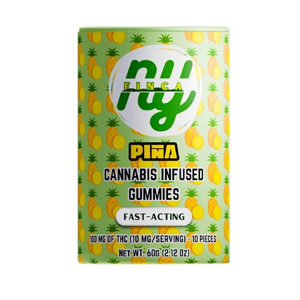 NY FINCA - PIÑA (PINEAPPLE) GUMMIES - "CUANDO SEA, DONDE SEA." INFUSED WITH THC FROM OIL DIRECTLY HARVESTED FROM OUR FINCA'S PLANTS, OFFERING A RICH PINEAPPLE FLAVOR. FAST-ACTING WITH NANO-ENHANCED CANNABINOIDS. VEGAN, GLUTEN-FREE, AND PERFECT FOR ANY OCCASION.