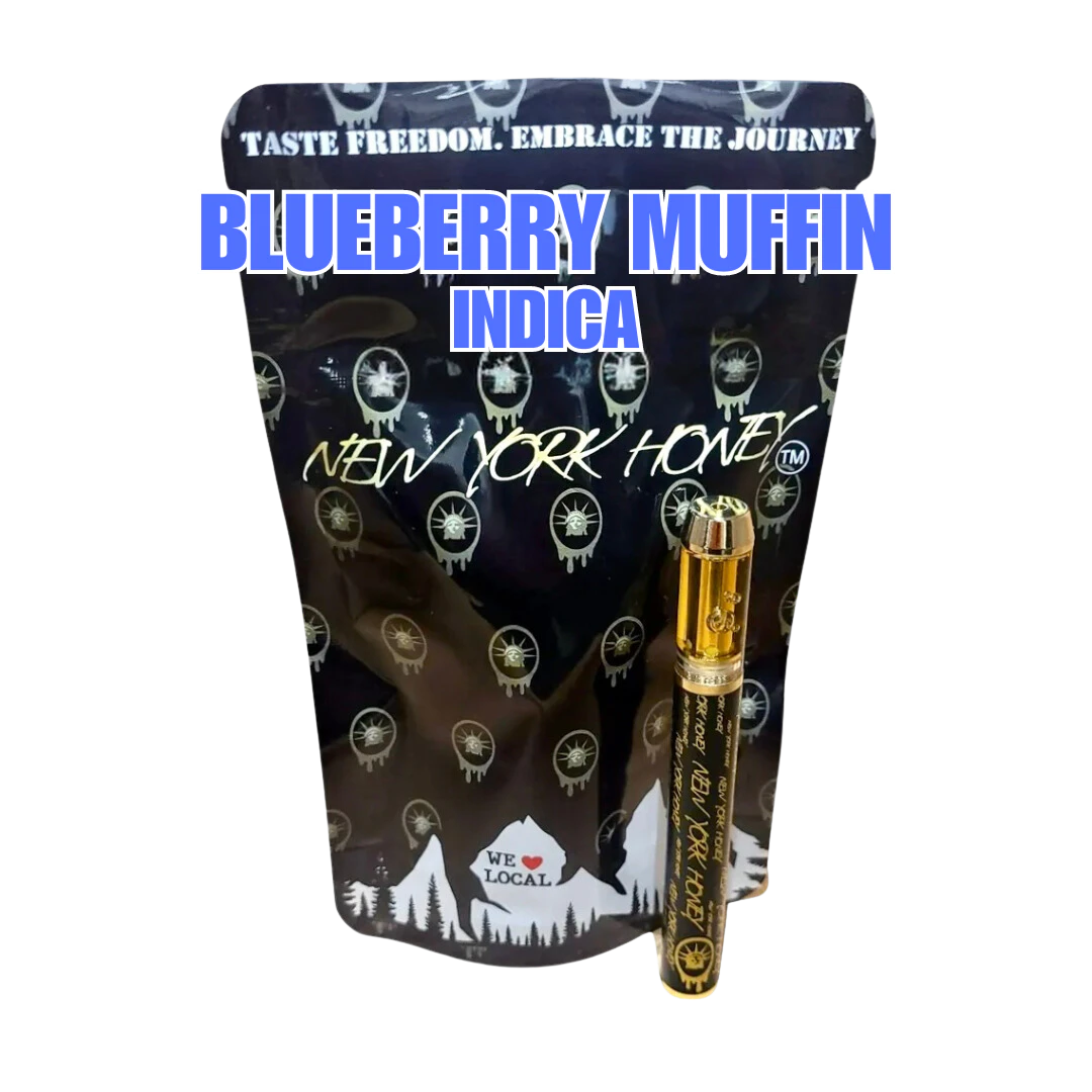 Blueberry Muffin is an indica-dominant strain crafted from Blueberry and Purple Panty Dropper. With a flavor profile reminiscent of freshly baked muffins with hints of vanilla and butter, this strain provides a sweet, creamy finish. Enjoy the relaxed, tingly, and happy feelings from New York Honey's custom-blended vape. This eco-friendly product from Veterans Choice Creations is rechargeable and reusable.