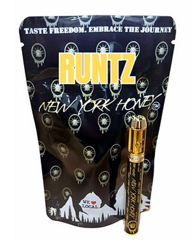 Runtz is a hybrid strain known for its sweet, fruity aroma with hints of candy and tropical fruit. It provides relaxing and euphoric effects. New York Honey's vape, a product of Veterans Choice Creations, is hand-crafted, eco-friendly, rechargeable, and reusable.