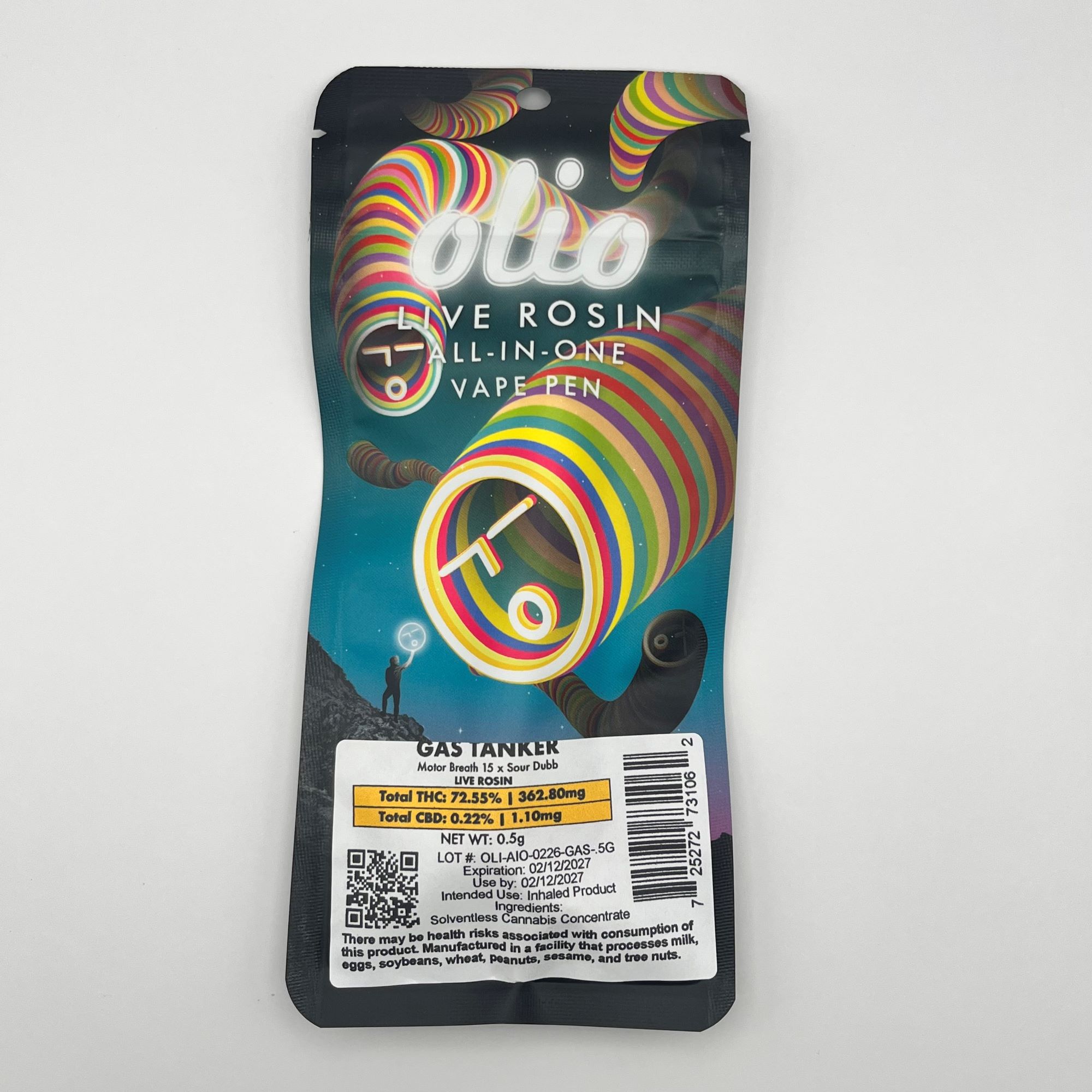 Olio - Gas Tanker - Live Rosin - 72.55% THC - 0.5g - AIO Vape Pen