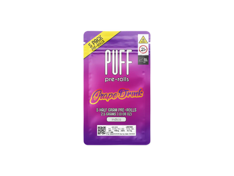 The juicy and delicious Grape Drink Puff Pre Roll is a true taste sensation, delivering a sweet and fruity flavor with a hint of earthy undertones. Whether you're looking to unwind after a long day, or simply enjoy a relaxing smoke, this strain is sure to hit the spot. The delicate balance of sweet and earthy notes makes for a smooth and satisfying smoke, with a happy and sedative high that's perfect for chillin on the couch