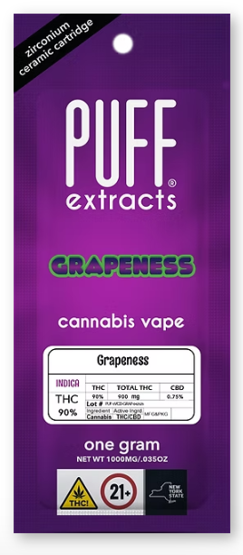 PUFF Grapeness Vape Cart delivers a bold and flavorful experience that’s as smooth as it is satisfying. This indica-leaning blend features rich grape notes and natural botanical terpenes for a sweet, juicy hit with every puff. Perfect for unwinding after a long day, it offers a calming, euphoric high that melts away stress and leaves you feeling blissfully relaxed. Indulge in the lush, full-bodied flavor of PUFF Grapeness—crafted for those who like their downtime deliciously chill.