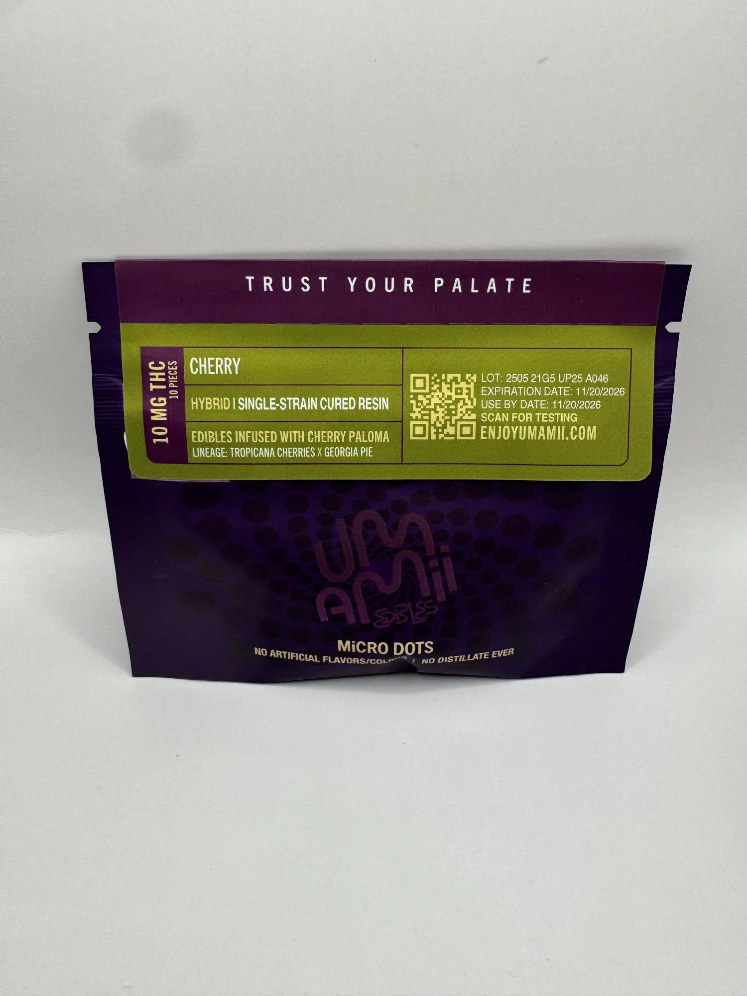 Cherry Paloma “Cherry” cured resin edibles deliver a flavorful, elevated experience crafted to capture the full character of the plant. Made with cured resin, these edibles offer a more robust, strain-forward effect compared to standard distillate, resulting in a balanced, longer-lasting high that feels smooth and well-rounded. Expect a relaxed, uplifting experience that’s perfect for unwinding, social moments, or enjoying a slow, steady rise.